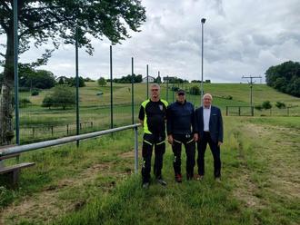 Im Verlauf der letzten Wochen wurde die Einzäunung des Fußballplatzes in Niederbiel komplett erneuert. Der teilweise mehr als 30 Jahre alte Maschendrahtzaun war stark baufällig geworden und an vielen Stellen völlig von Büschen und Pflanzen überwuchert. Ein Team des städtischen Bauhofs hat ca 400 m Stabgitterzaun in unterschiedlichen Höhen, je nach Platzausrichtung, installiert. Im Vorfeld musste hier der alte Zaun rund um den Platz zurückgebaut werden und die Bodenfläche geebnet werden, um den neuen Zaun aufzubauen. Die komplette Einzäunung des Platzes dient hauptsächlich zum Schutz vor Wildschweinen. Die Zaunanlage ist fertig aufgebaut, zur Straße hin soll die Anlage noch mit einem Ballfangnetz komplettiert werden. Bei dieser Baumaßnahme entstanden Kosten von ca. 20.000 Euro. Wir bedanken uns beim Team des städtischen Bauhofs für die Arbeiten.