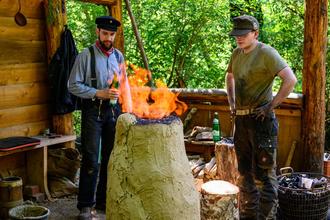 - Erstmalig werden DREI Rennöfen gebaut: Unsere Freunde vom Verein Altbergbau Bergstraße-Odenwald e. V., der Mineraloge Ludwig Meitzler und Elmar Bußmann, und unser Team, u. a. mit unserem Geologen Matthias Baum, dem Historiker Dr. Tim Schönwetter und Holger Süß, verhütten Fortuna-Erz wie im Mittelalter und gewinnen das Eisen bei 1.300°C.