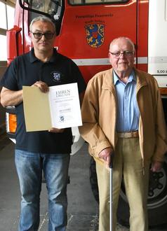 Kaiser zeichnete Helmut Kramer für 60-jährige Mitgliedschaft aus. Ferner wurden, jedoch in Abwesenheit, Edwin Gomber, ebenfalls für 60- jährige Vereinszugehörigkeit, sowie für 50-jährige Vereinstreue Gerhard Lerbs und Christoph Mett geehrt. Weitere Jubilare sind für Horst Berghäuser, Peter Clemens, Rainer Gross und Willi-Gerd Gross (40 Jahre) und Marion Rühl und Luigi Mastandrea (25 Jahre).