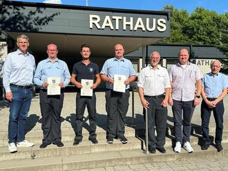 Im Rahmen der Magistratssitzung und im Beisein von Stadtbrandinspektor Oliver Schweitzer und dem stellvertretendem Stadtbrandinspektor Claus Röming überreichte Bürgermeister Frank Inderthal die Ernennungsurkunden. Die Herren Jens Rödel und Marcel Breitfelder legten außerdem zusätzlich ihren Amtseid ab.