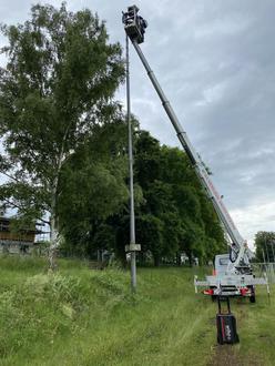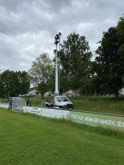 Die Flutlichtanlage am Rasen- und Hartplatz im Solmser Ortsteil Albshausen wurde kürzlich auf moderne LED Technologie umgestellt. Durch den Austausch der 8 Strahler am Großfeld kann bei voller Auslastung eine Stromeinsparung von 52% erzielt werden. Bei den 4 Strahlern am Kleinfeld ist bei Vollauslastung sogar eine Stromersparnis von 65% möglich. Eine weitere Stromeinsparung kann durch den Einsatz der stufenlosen Dimmung per App erreicht werden. Die Maßnahme wurde gefördert durch das Bundesministerium für Wirtschaft und Klimaschutz aufgrund eines Beschlusses des Deutschen Bundestags.