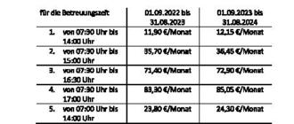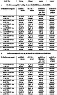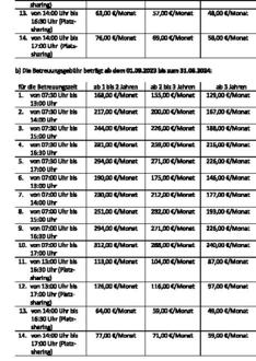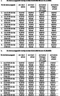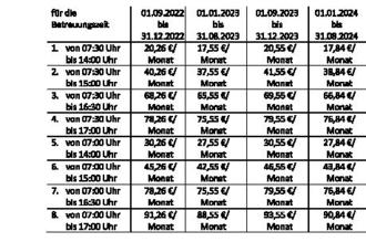 | (3) | a) Die Betreuungsgebühr beträgt ab dem 01.09.2022 bis zum 31.08.2023: |