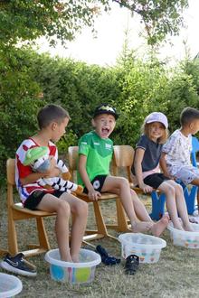 Besonders beliebt war auch das Kneippen für Kinder, das weder Teil der Bundesjugendspiele noch des Sportabzeichens darstellt, aber an diesem heißen Sommertag die größte Erfrischung bot.