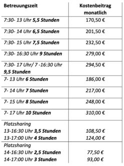 | Betreuungszeit 13:00 bis 16:30 Uhr | 108,50 € |