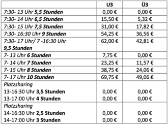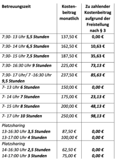 | Der Kostenbeitrag für die Betreuungszeitkarte beträgt unabhängig vom Alter des Kindes: |