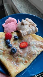Den Auftakt bildete ein köstliches Erlebnis rund um Eis und Crepes. 16 Kinder und Jugendliche hatten die Möglichkeit, ihre eigenen Eissorten zu kreieren, darunter Erdbeereis und Cookie-Eis, bei dem Kekse kurz vor Ende der Zubereitung in Vanilleeis eingearbeitet wurden. Im Anschluss wurde gemeinsam der Crepesteig zubereitet, und alle durften ihren eigenen Crepe belegen - von frischen Früchten bis hin zu Schokolade. Das Ergebnis war ein echter Gaumenschmaus.