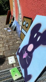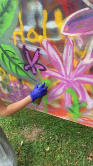 Ein weiteres Highlight waren die Graffitikurse, die in zwei Altersgruppen stattfanden. Für Kinder bis 10 Jahren sowie für ältere Kinder ab 10 Jahren wurde jeweils ein Kurs angeboten, bei dem die Teilnehmer*innen viel über die Geschichte des Graffiti erfuhren. „Wusstet ihr, dass Graffiti vor allem in New York geboren wurde? Heute sind Graffiti eine bedeutende Ausdrucksform in der urbanen Kunstszene“, erklärte Markus Lotz ihnen, unter dessen Leitung die Kinder auf Holzwänden draußen ihre eigenen Kunstwerke sprayen konnten. Es entstanden 22 bunte Galaxien, Figuren, Tiere und Städte, die die Kinder und Jugendlichen stolz mit nach Hause nehmen durften.