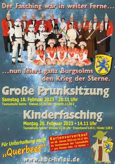 Abschließend lädt das Komitee Burgsolmser Carneval die Nachwuchskarnevalisten zum traditionellen Kinderfasching am Montag, den 20.02.2023 ab 14:11 Uhr in die Burgsolmser Narrhalla ein. Beim Fliegerlied, Polonäsen und einigen Darbietungen auf der Showbühne erwartet die Kinder ein Nachmittag mit viel Spaß. Einlass ist um 13:30 Uhr und der Eintritt kostet 4,- € für Erwachsene und 3,- € für Kinder. Für die richtige Stimmung beim Burgsolmser Kampagnenfinale sorgt erneut Alleinunterhalter André Schüller.