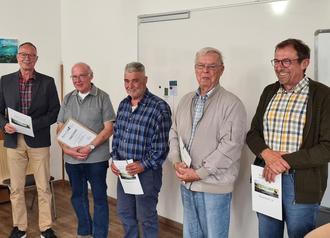 Für 25-jährige Mitgliedschaft wurden Martin Diggins sowie für 50 Jahre Ehrenvorsitzender Helmut Gaul und Helmut Schäfer geehrt.