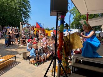 Beim schönsten Wetter feierte die Kita „Wirbelwind“ am 24.Juli in Oberndorf ein zauberhaftes und spannendes Sommerfest mit dem Thema „Zwerge und Riesen“. Alle 90 Kinder übten ganz konzentriert eine Woche lang singen, springen und tanzen. Das Team war sehr kreativ mit der Dekoration, mit der Auswahl der Tänze und Kostüme. Es wurde genäht, getackert und viel gemalt, denn die Riesen mussten ganz schön groß sein und die Zwerge tolle Mützen bekommen. Die Vorfreude war bei allen spürbar groß.