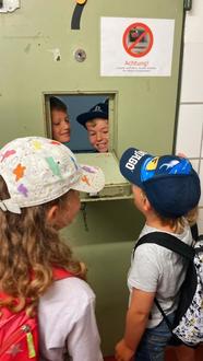 Also machte sich die Kinder- und Jugendförderung, bestehend aus Julia Gash und Nadine Eckert, sowie Praktikant Felix Drebes, mit 10 Kindern auf den Weg zur Wetzlarer Polizeistation. Das erste Abenteuer stellte dabei die gemeinsame Busfahrt da. „Wir mussten in Wetzlar umsteigen und haben festgestellt, dass das für viele Kinder das erste Mal war“, stellt Nadine Eckert fest. „Aber alle Kinder haben das super gemacht und waren überhaupt nicht ängstlich“, so Eckert weiter. Bei der Polizeistation angekommen, wurden die kleinen Entdecker*innen von Schutzmann vor Ort, Andreas Püchner, in Empfang genommen. Auf der Wache durften die Polizeibegeisterten nicht nur in die Wache reinschnuppern, die Zellen im Keller anschauen und eine Ausrüstung anziehen, sondern sogar im gleichen Aufenthaltsraum frühstücken. Das Highlight des Tages war aber das Polizeitauto. Alle durften sich mal an das Steuer setzen und Püchner betätigte sogar einmal kurz die Sirene. „Das ist aber laut!“, so die Ferienkinder. Im Anschluss an die Besichtigung liefen die Kinder noch zu einem Spielplatz an der Avignon Anlage um sich nochmal richtig auszutoben. Der spannende Tag wurde von einem Besuch in der Eisdiele gekrönt, bevor sich alle gemeinsam wieder auf den Heimweg nach Solms machten.