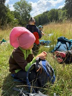 Am zweiten Tag der Woche stand ein spannendes Abenteuer im Wald auf dem Programm. Mira Spangenberger von den Oberbieler Waldforschern und Julia Gash von der Kinder- und Jugendförderung führten die Kinder in die „Kräuterzwergen Werkstatt“. Hier konnten die Teilnehmenden viel Zeit im Freien verbringen, spielen und die Natur erkunden. Ein besonderes Highlight war die Herstellung der „Müdebeine Emulsion“, die aus einem Johanniskrautölauszug, Kamilletinktur und einem Tropfen ätherischem Lavendelöl bestand. Diese natürliche Mischung sorgte für Entspannung und Wohlbefinden nach einem aktiven Tag im Wald.
