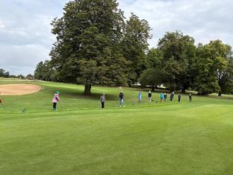Das dritte Ferienangebot in dieser Woche führte Julia Gash und Nadine Eckert zum Golfclub Braunfels, wo Silke Mertens die Kinder in die Welt des Golfens einführte. Aufgrund des zunächst schlechten Wetters wurde eine spannende Karts Tour durch den Golfclub organisiert, die allen viel Spaß bereitete. Anschließend lernten die Kinder das Putten, eine wichtige Technik im Golf, bei der der Ball mit einem speziellen Schläger, dem Putter, in das Loch befördert wird. Nach dem Putten ging es auf die Driving Range, wo die jungen Golfer*Innen ihre Schlagtechnik mit weiten Schlägen üben konnten. Ein aufregender Tag, der viele neue Erfahrungen bot!