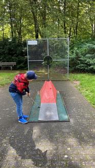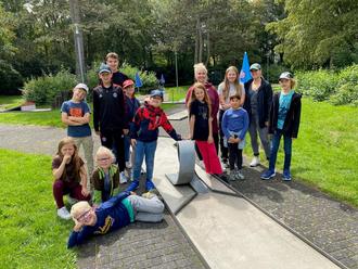 Nicht wer die meisten Tore schießt oder am schnellsten eine Strecke zurücklegt, sondern wer am wenigsten Schläge benötigt, befindet sich beim Miniatur Golf auf Erfolgskurs. Getroffen haben sich 11 Teilnehmende gemeinsam mit den beiden Stadtjugendpflegerinnen Julia Gash und Nadine Eckert, sowie Felix Drebes von der Kinder- und Jugendförderung (KiYou) bei der Wetzlarer Minigolf Anlage in der Lessingstraße. Bevor es mit den Schlägern und den Golfbällen zum ersten Loch ging, erklärten Gash und Eckert zunächst die Spielregeln. „Wer die Löcher mit den wenigsten Schlägen trifft, sollte am Ende auf dem Siegertreppchen ganz oben stehen“, so die beiden Stadtjugendpflegerinnen. Eifrig bestritten die Kinder in drei Gruppen den Parcours, der insgesamt aus 18 Bahnen besteht. Dabei findet sich auf jeder Bahn ein anderes Hindernis, welches die Golfanwärterinnen bestreiten müssen. Ob den Ball durch einen Slalom, einen Überschlag oder um ein Hindernis herum manövriert, die Ferienkinder bewiesen Geschick beim Umgang mit dem Golfschläger.
