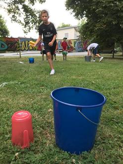 Den Startschuss für die Olympiade lieferten das Solmser Stadtjugendpflegerinnen-Duo Julia Gash und Nadine Eckert, die stets über einen fairen Ablauf des Wettkamps, bei dem der Spaß im Vordergrund stand, wachten. Nicht nur das Gelände um das Jugendzentrum trugen zum Gelingen der Ferienprogramm-Aktion bei, sondern auch strahlender Sonnenschein von der ersten bis zur letzten Minute des Wettkampfs. Wen wundert es also, dass bei den hochsommerlichen Temperaturen, immer wieder Abkühlung stattgefunden haben.