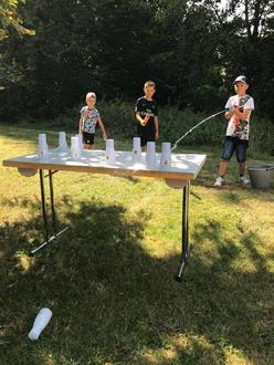 Insgesamt sieben Disziplinen hatten die Teilnehmenden zu durchlaufen und mussten beim Diskuswurf, beim Kegeln, Hockey und beim Schießen so viele Punkte wie möglich sammeln. Darüber hinaus war bei einem Spongebob-Spiel und Lösen eines Sommerrätsels ein glückliches Händchen und Allgemeinwissen gefragt. Kurz gesagt, für alle Olympioniken waren Favoriten dabei, so dass am Ende alle zahlreiche Punkte gesammelt hatten. Ob beim Diskuswerfen, wo mit einer Frisbeescheibe auf einen Dosenstapel geworfen wurde, beim Kegeln, wo mit einem Ball leere Wasserflaschen getroffen werden mussten oder beim Schießen, mit einer Wasserpistole auf Becher.