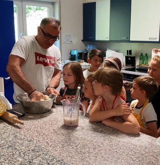 In der fünften Ferienwoche begrüßten 15 Kinder, sowie Julia Gash und Nadine Eckert von der Kinder- und Jugendförderung, Toni DiLeonardo im Jugendzentrum zum gemeinsamen Pizza backen.