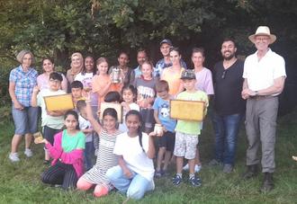 Gelegentliche Verständigungsprobleme wurden insbesondere von den Jüngeren Dank ihrer in der Schule erworbenen Sprachkenntnisse mit Simultanübersetzung rasch gelöst. Am Bienenstand angekommen stellte der Imker die Werkzeuge für die Bienenhege vor. Von allen getestet wurde der Smoker, die modernere Bienenpfeife, deren Rauch die Bienen im Volk beruhigt. Die drei Bienenwesen Königin, Arbeiterinnen und die männlichen Drohnen schilderte Hofmann mit ihren jeweiligen Lebensläufen und ihren besonderen Funktionen im Bienenvolk.