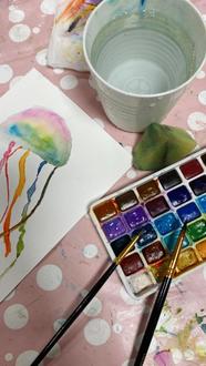 Zu Beginn der Woche drehte sich alles um das Thema Aquarellmalerei. Die Kinder hatten die Möglichkeit, diese besondere Maltechnik kennenzulernen und selbst auszuprobieren. Aquarellfarben zeichnen sich durch ihre Leuchtkraft und Transparenz aus - sie werden mit viel Wasser vermischt und lassen so fließende, weiche Farbverläufe entstehen. Durch das Malen mit Aquarell konnten die Kinder lernen, wie Farben sich auf dem Papier verhalten, welche Wirkung unterschiedliche Pinselstriche haben und wie man durch das Schichten von Farben Tiefe erzeugen kann.