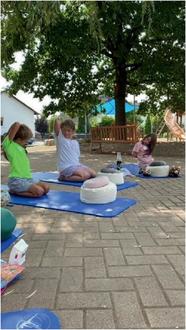 Ein besonderes Angebot fand in der KiTa Oberbiel statt: Unter der Anleitung von Andrea Frey konnten die Kinder in die Welt des Kinderyogas eintauchen. Kinderyoga unterscheidet sich vom klassischen Yoga für Erwachsene durch spielerische Elemente und fantasievolle Geschichten, die die Kinder auf eine Reise mitnehmen – mal durch den Dschungel, mal ans Meer oder hoch in die Lüfte. Dabei werden gezielt kindgerechte Körperhaltungen (Asanas) eingebaut, die nicht nur die Motorik und Körperwahrnehmung fördern, sondern auch Konzentration und Achtsamkeit stärken.