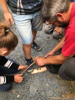 Zum Abschluss lernten die Kinder, welche Materialien benötigt werden, um ein Feuer zu entzünden. Dafür werden trockenes Holz und kleine Äste benötigt. Alle machten sich auf die Suche nach Materialien und bauten ihre eigene kleine Feuerstation. Natürlich in einer Feuerschale und kontrolliert, sodass die Natur nicht gefährdet wurde.