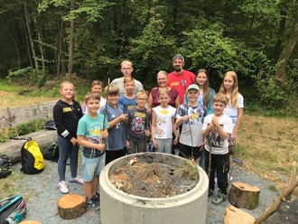 12 Ferienkinder trafen sich am Tiefenbacher Wald, um zu lernen, wie in der Natur überlebt werden kann. Die beiden Stadtjugendpflegerinnen Julia Gash und Nadine Eckert begleiteten dabei Nicole Jagst-Recchia und Christopher Recchia, die beide eine Weiterbildung zur Naturpädagogik absolviert haben.