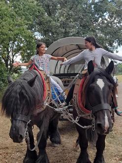 Nach einem kleinen Spaziergang vom „Haus Daheim“ zur Grillhütte erwartete uns schon die Pferdekutsche von Miriam und Volker Uhl.