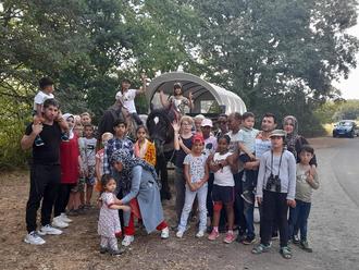Nach der Einteilung in 3 Gruppen (26 Kinder mit Eltern) konnte die 1. Fahrt schon gleich starten. Alle anderen Teilnehmer haben gemeinsam gemütlich unter den schattenspendenden Bäumen gesessen und die mitgebrachten landestypischen Leckereien verzehrt.