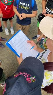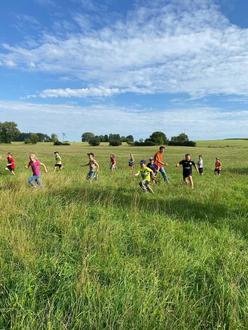 Als die Kinder aus dem Jugendzentrum rausgingen sahen sie schon direkt die ersten Pfeile auf dem Boden in welche Richtung die Kinder gehen sollten. Die Pfeile führten zu dem ersten Hinweis auf dem Schulhof der Gesamtschule in Solms. Dort erwarteten sie schon die Quizfragen welche echt kniffelig waren. Von dort aus mussten die Kinder zu dem Bikepark gehen wo der nächste Hinweis versteckt war. Als sie ankamen lösten sie die Matheaufgaben um auf ein Lösungswort raus zu bekommen. Das Wort ergab „Galgenwald“ also liefen sie wieder los und dort mussten die Kinder sich in der Reihenfolge des Alters auf einen Baum stellen um den nächsten Hinweis zu erhalten. Bei einer Kreuzung kam der Hinweis dass sie Richtung Südwesten gehen mussten. Da sind plötzlich Fragen aufgekommen wie „Woher sollen wir Wissen wo Südwesten ist?“. Ein Kind wusste es aber, „Es hat etwas mit dem Moos zu tun, es wächst nämlich im Norden der Baumseite“. Dies war auch richtig. Als sie zu dem letzten Hinweis kam mussten die Kinder mit Artur Lautenschläger und Felix Drebes „Wer hat Angst vor Artur und Felix spielen“. 10 Kinder mussten durch kommen damit sie den letzen Hinweis erhalten. Schlussendlich ging es zu der Grillhütte wo Julia Gash schon im vorhinein das Feuer für das Stockbrot vorbereitet hat. Als sich dann alle einen Stock geschnappt hatten, erklärte Felix Drebes den Kindern wie man das Stockbrot auf den Stock wickelt. Die Kinder hatten sehr viel Spaß an dem Stockbrot machen, auch wenn es bei manchen besser klappte wie bei anderen. Geschmeckt hat es aber allen.