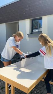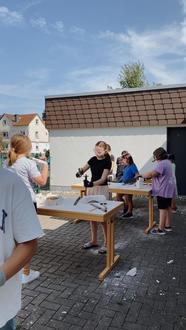 Die beiden Stadtjugendpflegerinnen Julia Gash und Nadine Eckert luden gemeinsam mit Gemeindepädagogin Sabine Schäfer, sowie Tamea und Franziska von der evangelischen Kirchengemeinde, für einen Workshop für Skulpturen aus Ytong Steinen in das Gemeindehaus nach Burgsolms ein.