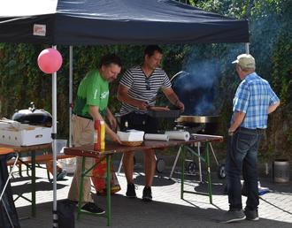 Die konnten es sich gut gehen lassen. Neben den üblichen Getränken wurden mehrere Sorten Würstchen vom Grill angeboten und fanden reißenden Absatz. Am frühen Nachmittag war die reich bestückte Kuchentheke der Renner. Die Helferinnen und Helfer hatten gut zu tun, um alle Wünsche zur Zufriedenheit der Gäste zu erfüllen.
