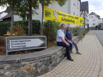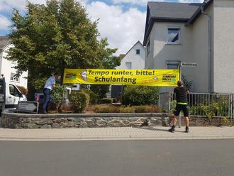 Zu diesem Zweck wurde am Donnerstag im Beisein von Herrn Klaus Ruppelt am Lindenplatz in Solms-Oberndorf auch ein solches Banner aufgehangen.
