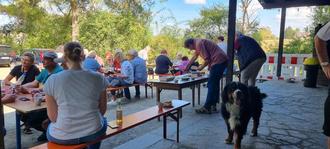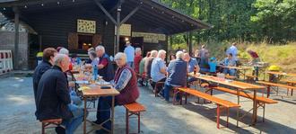 Die Feier fand im Freien statt, da die Instandsetzung des Innenraums noch aussteht. Dies hielt die Gäste nicht davon ab, bis zum späten Nachmittag in fröhlicher Runde zusammen zu sein. Für das leibliche Wohl sorgten ganz traditionell Würstchen vom (Gas-)Grill, kalte Getränke, Kaffee und Kuchen.