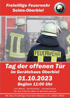 Die Freiwillige Feuerwehr Oberbiel öffnet am Sonntag, den 01.Oktober 2023 ihre Türen im Feuerwehrhaus in der Norrstraße. Ab 11:00 Uhr erwartet die Gäste dort dann neben vielen Informationen rund um die Arbeit der Feuerwehr auch Live-Musik, eine zünftige Erbsensuppe, Leckeres vom Grill, Kaffee und Kuchen sowie ein reichhaltiges Getränkeangebot.