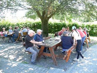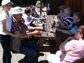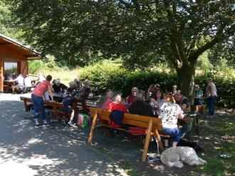 Zwischenzeitlich wurde vom Vorstand an der Schäferburg alles für das Sommergrillen vorbereitet. Die Gäste wurden mit gekühlten Getränken erfrischt und zum Essen gab es Bratwurst, Steaks und Brot.