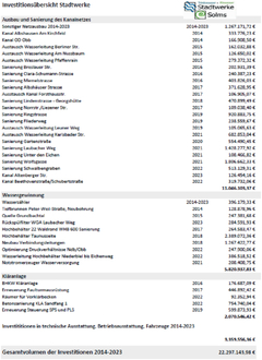 Dem gegenüber stehen jedoch eine Vielzahl von Sanierungsmaßnahmen, die durch die Stadtwerke Solms in den vergangenen 10 Jahren vorgenommen wurden. Große Teile von Wasserleitungs- und Kanalnetz und auch der Kläranlage sind auf einen aktuellen Stand gebracht worden. Dabei konnte das sehr niedrige Zinsniveau der vergangenen Jahre genutzt werden, um auch die Gebühren niedrig zu halten