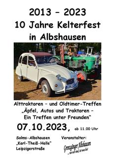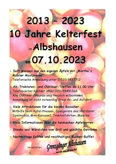 Nun ist es nicht mehr lang bis zum Albshäuser Kelterfest. Wer sich noch zum Apfel pressen oder auch mit seinem alten Fahrzeug zum Alttraktoren- und Oldtimertreffen anmelden möchte, sollte dies jetzt tun. Nähere Infos hierzu gibt es auf unserem Flyer.