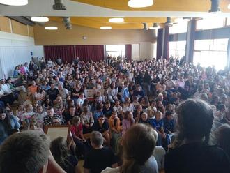 Ein weiterer Punkt der Veranstaltung war die Begrüßungsrede von Stufenleiter Stefan Kern. In seiner Ansprache betonte er die Bedeutung der Vielfalt und der individuellen Förderung an der Schule. Sein markantes Zitat, "Der Regenbogen mit seinen Farben steht für die vielfältigen Schülerinnen und Schüler ebenso wie für die vielfältigen Lernangebote und Lernbegleiter auf dem Weg an der IGS Solms", drückte treffend die Philosophie der Schule aus.