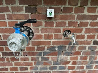 Für die Förderung des Brauchwassers wurde eine vertikale Unterwassermotorpumpe eingebaut. Eine Entnahme ist sowohl für den landwirtschaftlichen Bedarf sowie für den privaten Gebrauch, wie z.B. für die Bewässerung von privaten Gärten durch die Anordnung zweier Zapfstellen, je nach gewünschter Entnahmemenge, möglich. Das Wasser kann aus einem C-Schlauchanschluss in Intervallen von 5 Minuten entnommen werden. Außerdem gibt es noch eine Außenzapfstelle, auch hier ist die Entnahme in Intervallen möglich. Wichtig zu wissen: es handelt sich bei dem Wasser nicht um Trinkwasser! Die eingebauten Rohrleitungen bestehen aus Edelstahl.