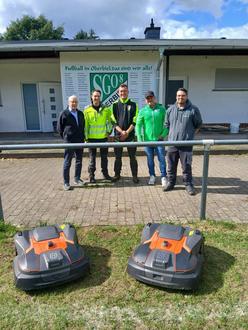 Der neue Mähroboter auf dem Rasenplatz in Solms-Oberbiel ist bereits im Einsatz und ersetzt den bisherigen Aufsitzmäher weitestgehend. Sein elektrischer Betrieb senkt die jährlichen CO₂-Emissionen um rund 83 Prozent, sodass der Platz künftig fast klimaneutral gemäht wird. Weil der Roboter das Gras in kurzen Intervallen fein schneidet und als Mulch liegenlässt, gelangen wertvolle Nährstoffe sofort wieder in den Boden; dadurch können wir ein bis zwei Düngegänge pro Jahr einsparen. Dank seines geringen Gewichts verdichtet das Gerät den Boden nicht und kann selbst bei feuchter Witterung fahren, ohne Spurrillen zu hinterlassen. Lärm und Abgase gehören ebenfalls der Vergangenheit an - ein Gewinn für Spieler, Anwohner und Umwelt. Zudem entfällt das aufwändige Abtransportieren von Grünschnitt, was Zeit, Treibstoff und Personalressourcen spart. Die Investition amortisiert sich somit in wenigen Jahren, während der Rasen dauerhaft in bestmöglichem Zustand bleibt und der Platz nahezu jederzeit bespielbar ist. Die wöchentliche Wartung, sowie Reinigungsarbeiten der Mähroboter übernimmt der Verein SG 08 Oberbiel.