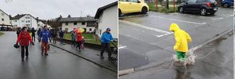 Am 15.01.23 erfolgte ein kritischer Blick `gen Himmel – wird es heftig regnen oder gar stürmen? Trotz des anhaltenden Regens fanden sich 20 Personen um 10:00 Uhr früh zu einer kleinen Wanderung am Parkplatz „ehemalige Sparkasse“ ein. Nach kurzer Planung der Route wurde entschieden möglichst geteerte als auch kinderwagenfreundliche Wege zu benutzen. Die Strecke führte durch die Unterführung der Landstraße zum Bahnhof, weiter zur Klingschleuse und am Schwimmbad vorbei zum Zielpunkt. Wir sahen viele Gänse in den Wiesen der Hochwasser führenden Lahn. Die Kinder hatten auf jeden Fall viel Spaß dabei, dank gut ausgestatteter Kleidung war dies kein Problem.