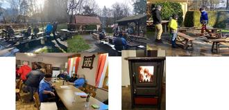 Gegen 11:45 kam die Wandergemeinschaft an unserem schönen Vereinsgelände im Laubacher Weg an. Dort wartete noch ca. ein weiteres Dutzend an Vereinsmitgliedern und Angehörigen auf unser Ankommen, welche dem Wetter nicht trotzen wollten. Wir stärkten uns bei Bäuchling, Hackbraten und Bratwürsten, diversen Kaltgetränken und leckerem weißen Glühwein. Wer wollte wärmte sich an der Feuerstelle außen oder an unserem neuen Ofen in der Hütte auf. Das Wetter verbesserte sich immer mehr – bei Kaffee und Kuchen war sogar die Sonne hervorgekrochen.