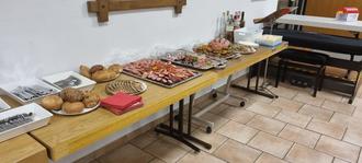 Trotz des verregneten Samstagnachmittages hatte sich eine verwegene Gruppe zur Winterwanderung des Verkehrsvereins getroffen. Vom Kalkgraben führte uns der Weg über die Wintersburg und Mainbach zum Tretbecken. Nach kurzer Rast ging es weiter in den Vereinsraum der Taunushalle. Bei Kaffee und Kuchen war das Wetter schnell vergessen. Mit kurzweiligen Gesprächen verging die Zeit bis zum zünftigen Abendessen schnell, so dass nach Wurst, Mett und Käse nur noch zu sagen wäre, wir hoffen die nächste Winterwanderung findet ihren Abschluss wieder in unserer Kalkgrabenhütte!
