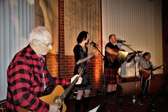 Zum Irischen Abend“ hatten die Evangelischen Kirchengemeinden Albshausen und Steindorf in das evangelische Gemeindehaus „Unter den Eichen“ in Albshausen eingeladen. Eilig wurden kurz vor Beginn der Veranstaltung noch zusätzliche Stühle aufgestellt, und so freute sich Mitorganisator Wolfgang Velten, 180 Gäste zur 4. Veranstaltung im Rahmen der Veranstaltungsreihe „Kulturkirche“ begrüßen zu dürfen. Den überwiegenden musikalischen Teil gestalteten Thomas Wandt und dessen Ehefrau Julia. Gegen Ende bekam das Ehepaar Verstärkung durch Norbert Schenk und Gerry Barth, die wie Thomas Wandt Mitglieder der mittlerweile weit über die Region bekannten Band „Lagana“ sind. Mit Dudelsackmusik und „Green hills of Tyrol“ und „When the battle is over“ eröffneten die beiden den musikalischen Reigen. Thomas Wandt gab zwischendurch Erläuterungen zu den Titeln wie bei „Four green Fields“ wo die Hoffnung der Iren der Iren auf Wiedervereinigung , in der letzten Strophe dominiert. Julia Wandt erhielt nicht nur hier für ihren gefühlvoll und mit stimmungsvollen Gesang viel Beifall. Thomas Wandt beschrieb auf musikalische Weise einen irischen Pub Abend mit „Feel to drink“. Man Verabredet sich nicht unbedingt, sondern geht einfach hin und trifft Leute“. Bei „Sitting on the bridge below town“ ging es um einen Platz im Dorf wo sich Kids und Tweens treffen, Freundschaften entstehen und Ehen angebandelt werden. Und in „Fiddler´s Green wurde das Paradies der irischen Seeleute besungen, wo die Rumflachen an den Bäumen wachsen und die Fische ins Boot springen. Ob im Duett, oder bei Solobeiträgen, ob mit wechselnden Instrumenten vom Dudelsack über Gitarre oder Harfe mit Julia, es wurde ein kurzweiliger Abend, bei dem das Publikum, dass des Öfteren zu den Refrains mit einbezogen wurde, dankbar mit Beifall honorierte. Als die Lagana-Kollegen Norbert Schenk und Gerry Barth sich mit „Wild rover“ und „Whiskey in the jar“ zum Abschluss mit auf die Bühne gesellten, geriet die Stimmung auf den Siedepunkt