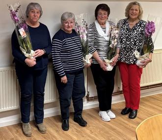 Wir ehrten unsere fleißigsten Sängerinnen 2025 Utta Schneider, Ursula Lücker, Thea Schneider und Rosi Hackbusch für 55 Jahre Sängertätigkeit.