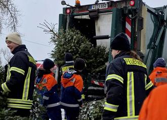 Mit schwerem Gerät rückten am Wochenende 50 Kinder- und Jugendfeuerwehrleute aus allen Solmser Stadtteilen sowie mindestens ebenso viele Helfer aus den Einsatzabteilungen und der Bürgerschaft den ausgedienten Weihnachtsbäumen zu Leibe. Insgesamt holten die jungen Brandschützer über 1000 nadelige Festüberbleibsel von den Gehwegen ab, verluden sie auf Anhänger und brachten sie zu einem zentralen Sammelplatz, wo das Grün demnächst als Schreddergut eine neue Bestimmung erhält.