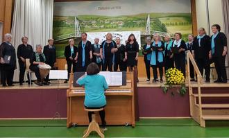 Es folgte der zentrale Programmpunkt des Abends: Die erste und zweite Vorsitzende, Hannelore Lassahn und Rosemarie Hackbusch-Uhl erzählten kurzweilig in ihrer ganz eigenen, teils launigen und emotionalen Art, aus der Geschichte des Vereins, aufgeteilt in drei Abschnitte. Dazwischen gab es Liedvorträge in unterschiedlichen Besetzungen: gemischter Chor aus MGV und MELODY Niederbiel; Frauenchor CANTABILE Kraftsolms und großer Frauenchor aus CANTABILE Kraftsolms und MELODY Niederbiel. Teilweise mit Klavierbegleitung von Claudia Kim gestützt.