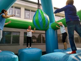 Neben „Schlag den Sportlehrer im Basketball“, dem „Goliath-Kicker“ für über 20 Mitspieler, einer „Baseball-Maschine“, einem fünf Meter hohen „Kletterpilz“ und „Mario-Kart“ am Active-Panel, gab es auch klassische Spiele wie Dosenwerfen, Tauziehen oder Dartwerfen. Im Schulgarten konnte einen Barfußpfad begangen, Gewichte geschätzt und sich über regional hergestellte Nudeln informiert werden.