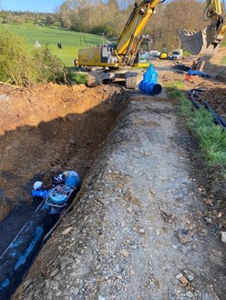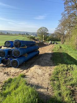 Im Auftrag der Stadtwerke Solms wurde in Oberbiel in der Verlängerung der Norrstraße in Richtung des Hochbehälters eine neue Fallleitung auf einer Länge von ca. 900m verlegt. Die vorhandene in die Jahre gekommene Fallleitung musste hier komplett erneuert werden. Die Baumaßnahme wurde in 2 Bauabschnitten erledigt.