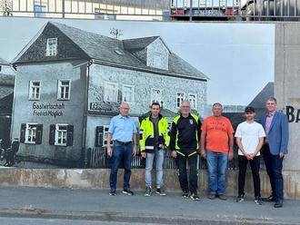 Die Stützmauer in der Wetzlarer Straße in Oberbiel ist neu gestaltet worden. Die Idee zur Neugestaltung der Stützmauer war eine Initiative des Vereins Biela Marca e.V. Heimat- und Kulturverein Oberbiel. Die Firma Wenserit & Failing hat die historischen Aufnahmen zunächst digital bearbeitet und nach einer Reinigung der Fassadenoberfläche wurde die Fassadenfolie aufgebracht. Hierbei entstanden Kosten von ca. 8.500 Euro, die aus dem städtischen Haushalt finanziert wurden. Die Koordination zwischen dem Verein Biela Marca, der Firma Wenserit & Failing sowie der städtischen Bauabteilung übernahm der erste Stadtrat Jörg Leidecker. Bei einer gemeinsamen Präsentation in dieser Woche konnten sich alle Beteiligten von dem sehr schönen Ergebnis der Initiative überzeugen.